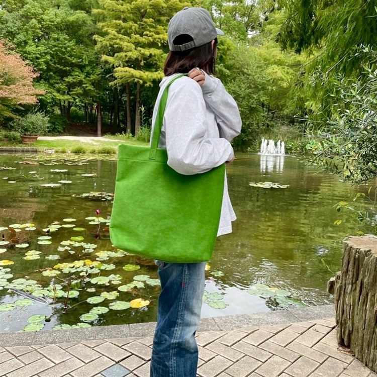 家庭での洗濯も可能なマイクロファイバースエードを使ったトートバッグ。
