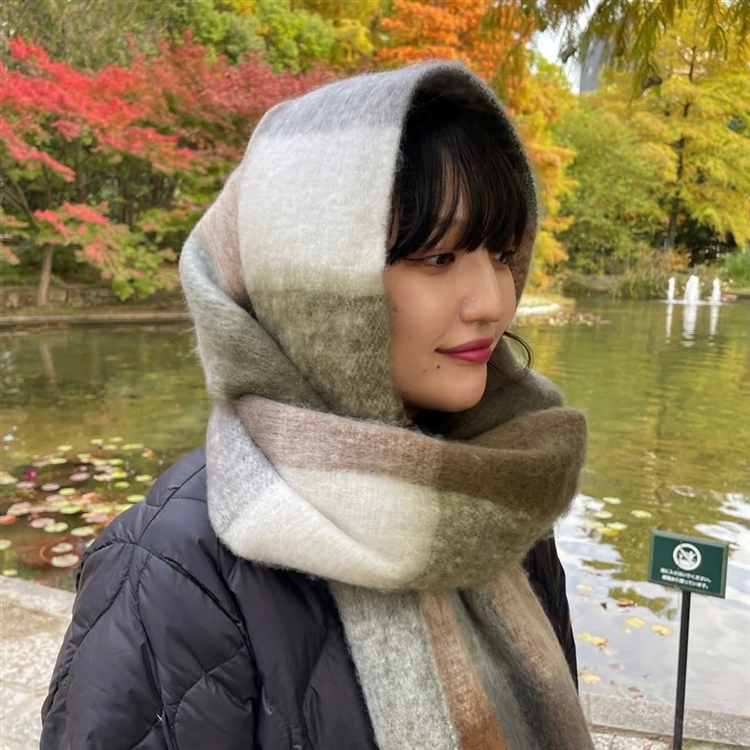 厚手の生地と大判サイズで暖かさと華やかさを兼ね備えたマフラー。