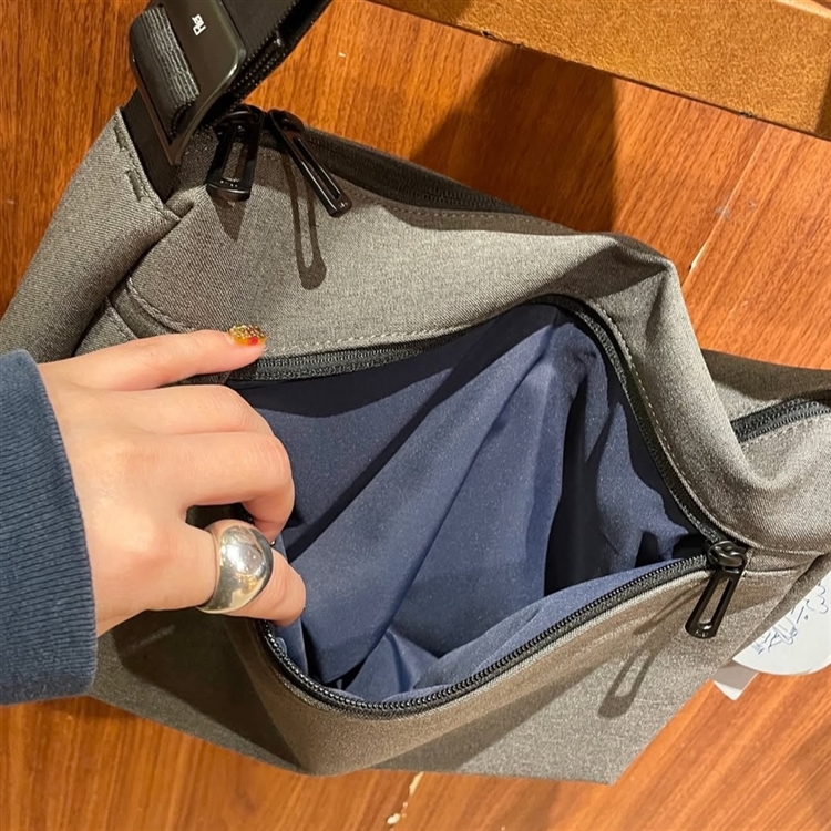 フロント・背面ともにジッパーポケットが一つずつ付いているので、スマホや鍵などすぐに取り出したいものの収納にとっても便利。
